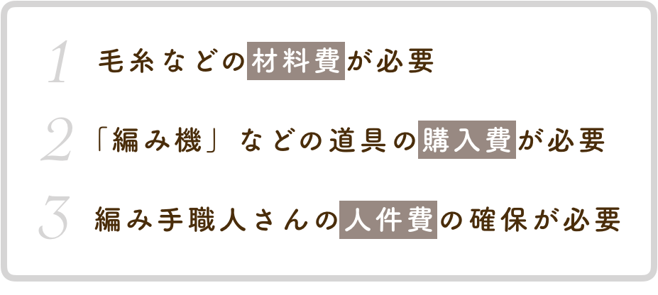 「AND WOOL」の製品は1つ1つ手作業で仕上げますから大変手間がかかりますが、上質で高級な製品に仕上がります。無理に安価で販売することなく適正な価格設定を行えば、製造現場の作り手に低賃金労働を強いる必要がなくなります。