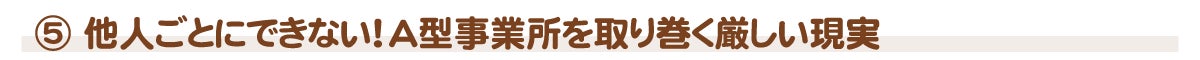 この背景には、「A型事業を取り巻く厳しい現実」と、昨今行われた「大きな法改正」の影響があり、実はデコベル同様の問題に直面するA型事業所が、全国的に数多く存在しているのです。