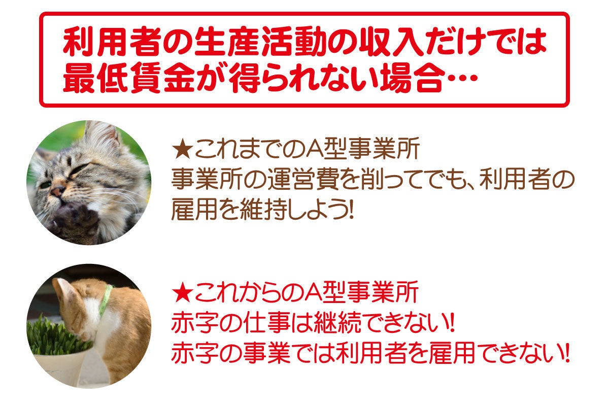 換言すれば「A型事業所が行うべき事業は、利益を産みだす事業だけ」となります。