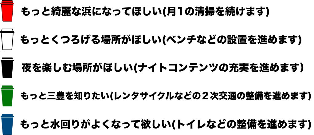 そして、選んでくれた色をアンケートとして指定管理チームと共有し、色が多かったところから改善を進めていきます。