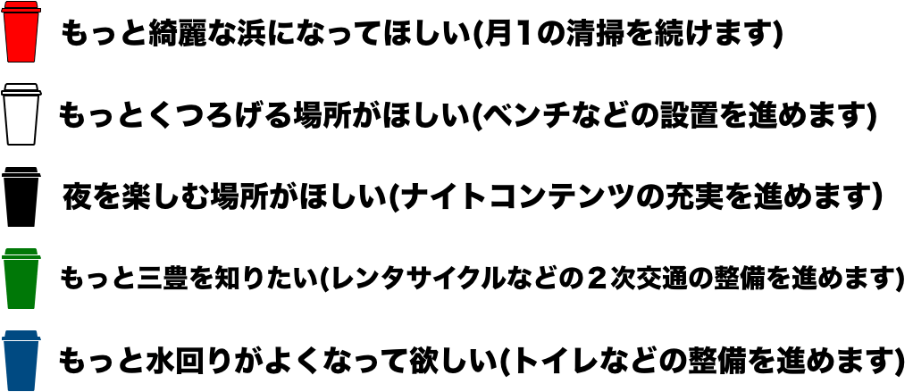 そして、選んでくれた色をアンケートとして指定管理チームと共有し、色が多かったところから改善を進めていきます。