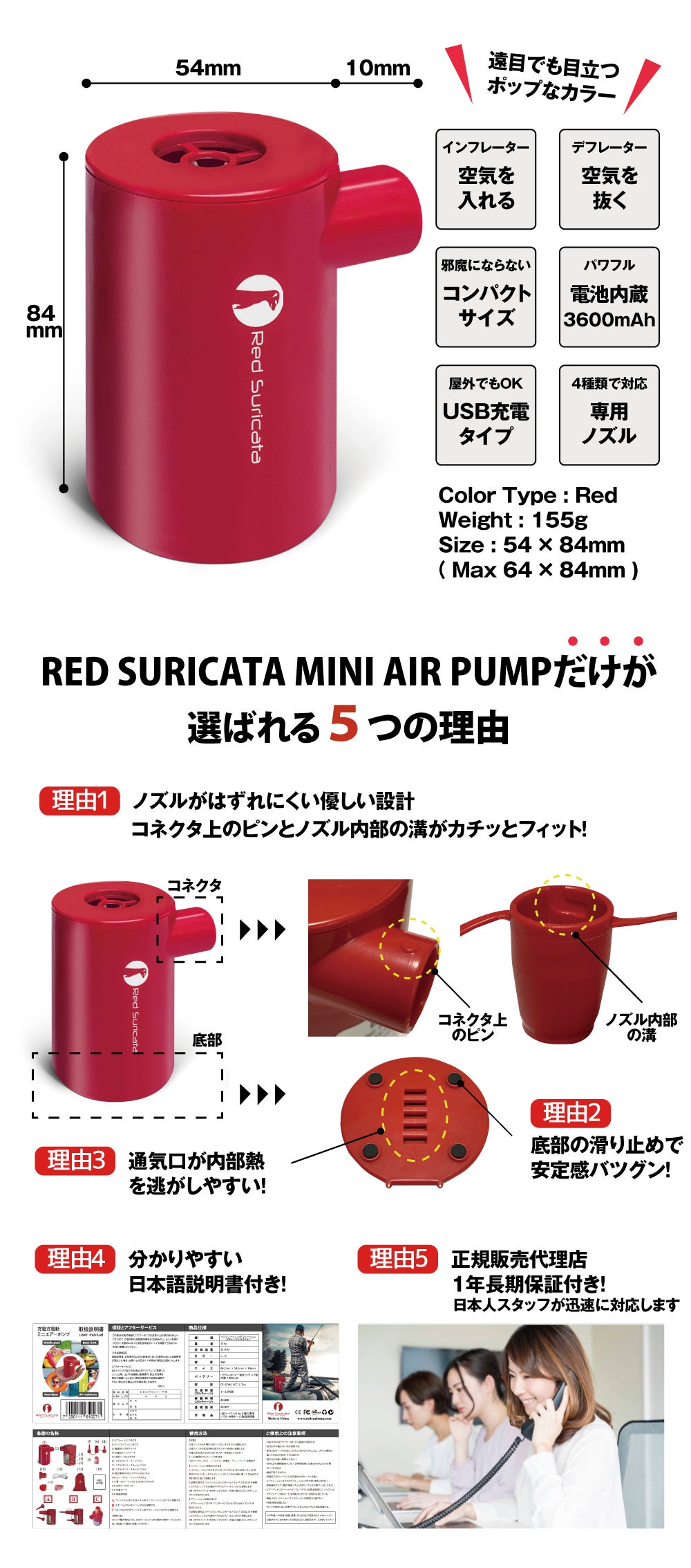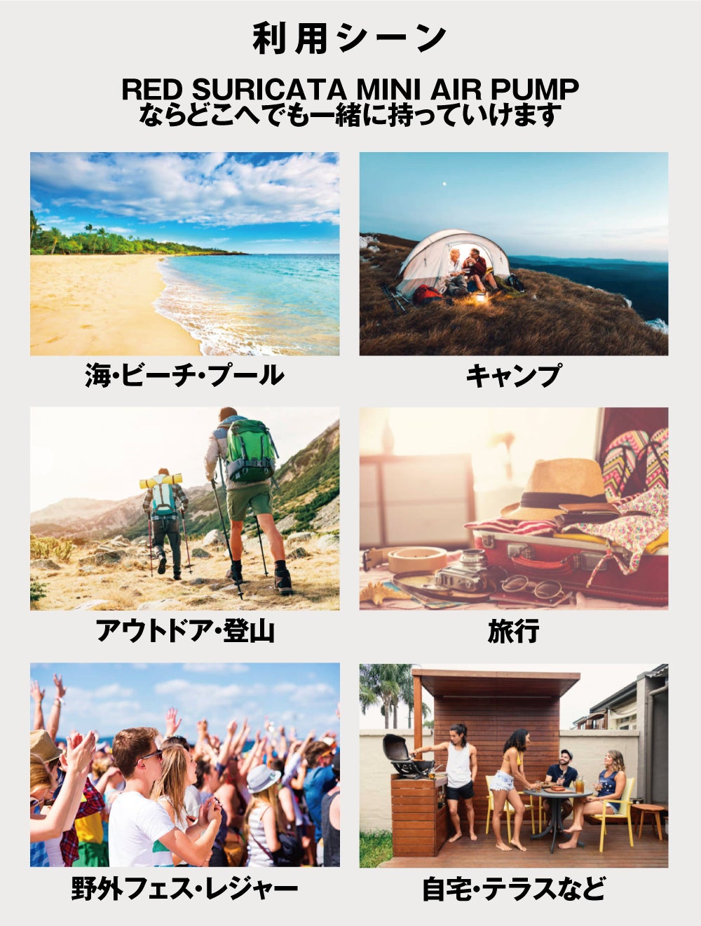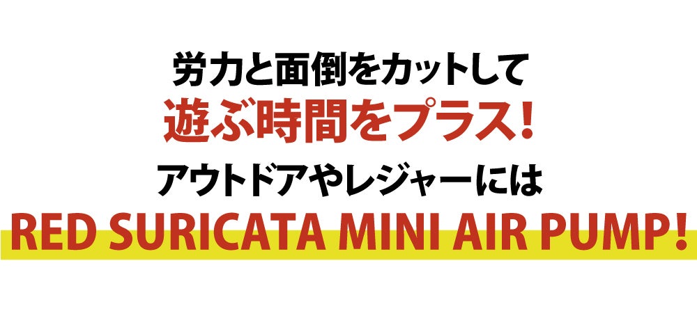 今回ご紹介する「RED SURICATA MINI AIR PUMP」は無駄な時間や労力をカットできる、忙しい現代人にピッタリなプロダクトです。任せられるところはプロダクトに任せて、ご自身のために、家族や友人など、大切な人との有意義な時間や楽しいレジャーを優先していただけたら嬉しいです。
