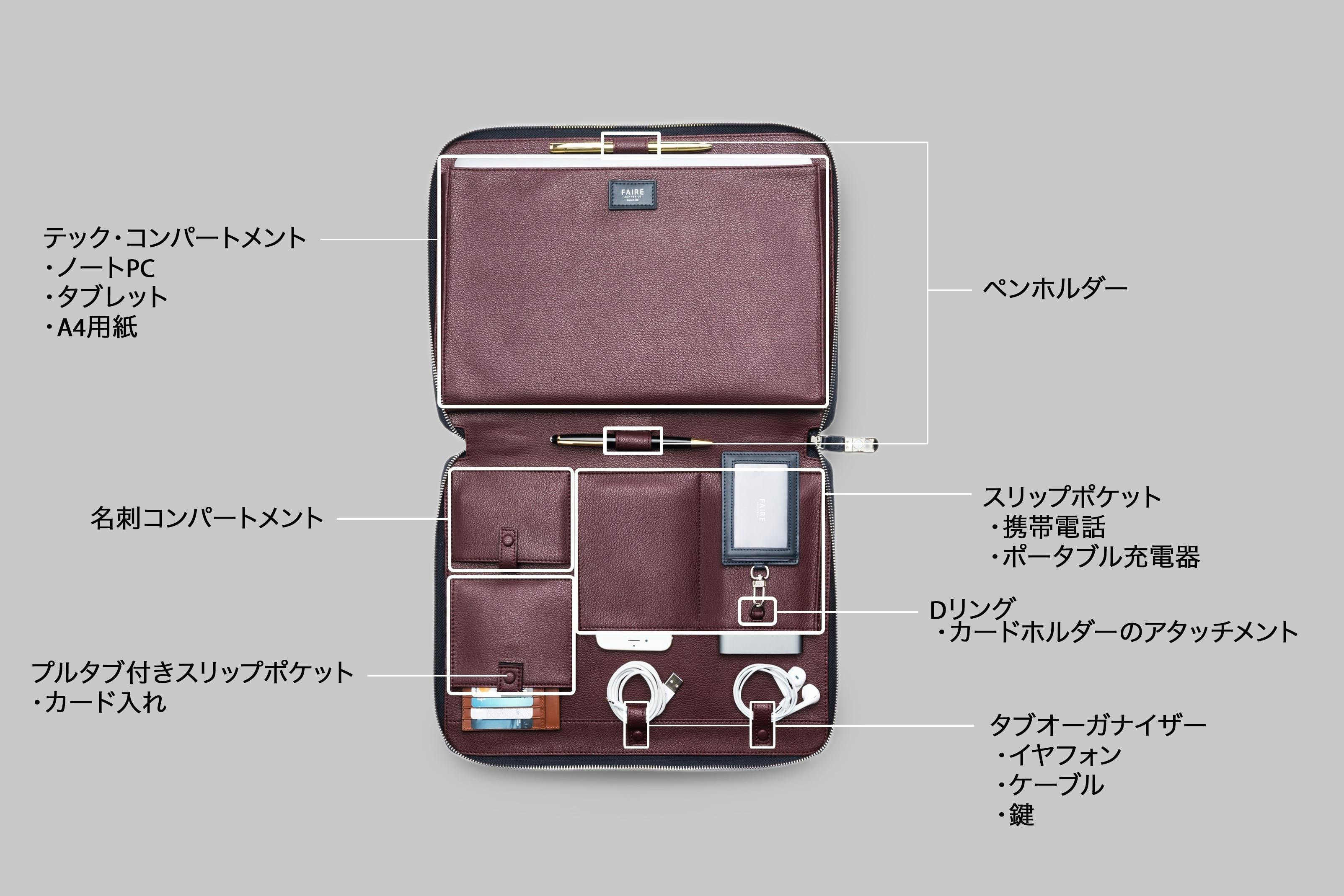 高機能レザーバッグのラインアップより、タブレット、薄型ノートPCに対応したクラッチタイプのレザーバッグをご紹介します。