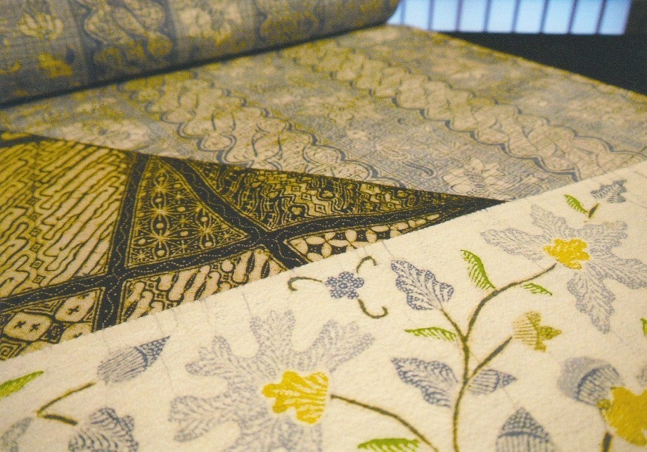 2)国際交流基金助成事業「バティックを中心とした日本・インドネシア染色文化の交流と共同制作プロジェクト(スタディツアー)」を主催。このツアーをきっかけに、インドネシア、プカロガン市の織物工房と日本の壁紙工場のご縁を繋ぎ、新商品の共同開発が始まった。
