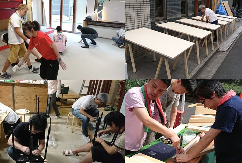 2019/09/05 13:409/11(水)のオープニングに向け、急ピッチで作業を進めています。先週の土日には床塗装。たくさんのメンバーが参加してくれました。塗装が乾くまで部屋の中に入れず、店の外でペチャクチャと賑やかでした。机や椅子の組み立てや塗装も進み、それっぽくなってきました。 もっと見る