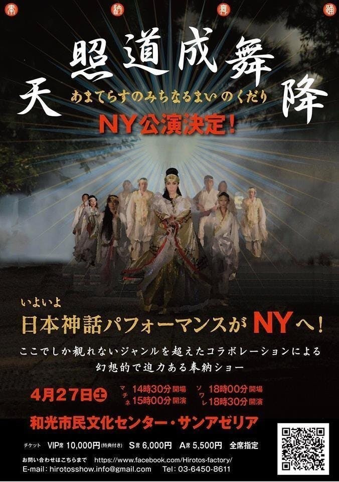 2018年11月、日本神話をモチーフにした舞台『天照道成舞降(あまてらすみちなるまいのくだり)』で初の脚本を手掛ける。2019年6月にニューヨークにて公演。好評を得る。