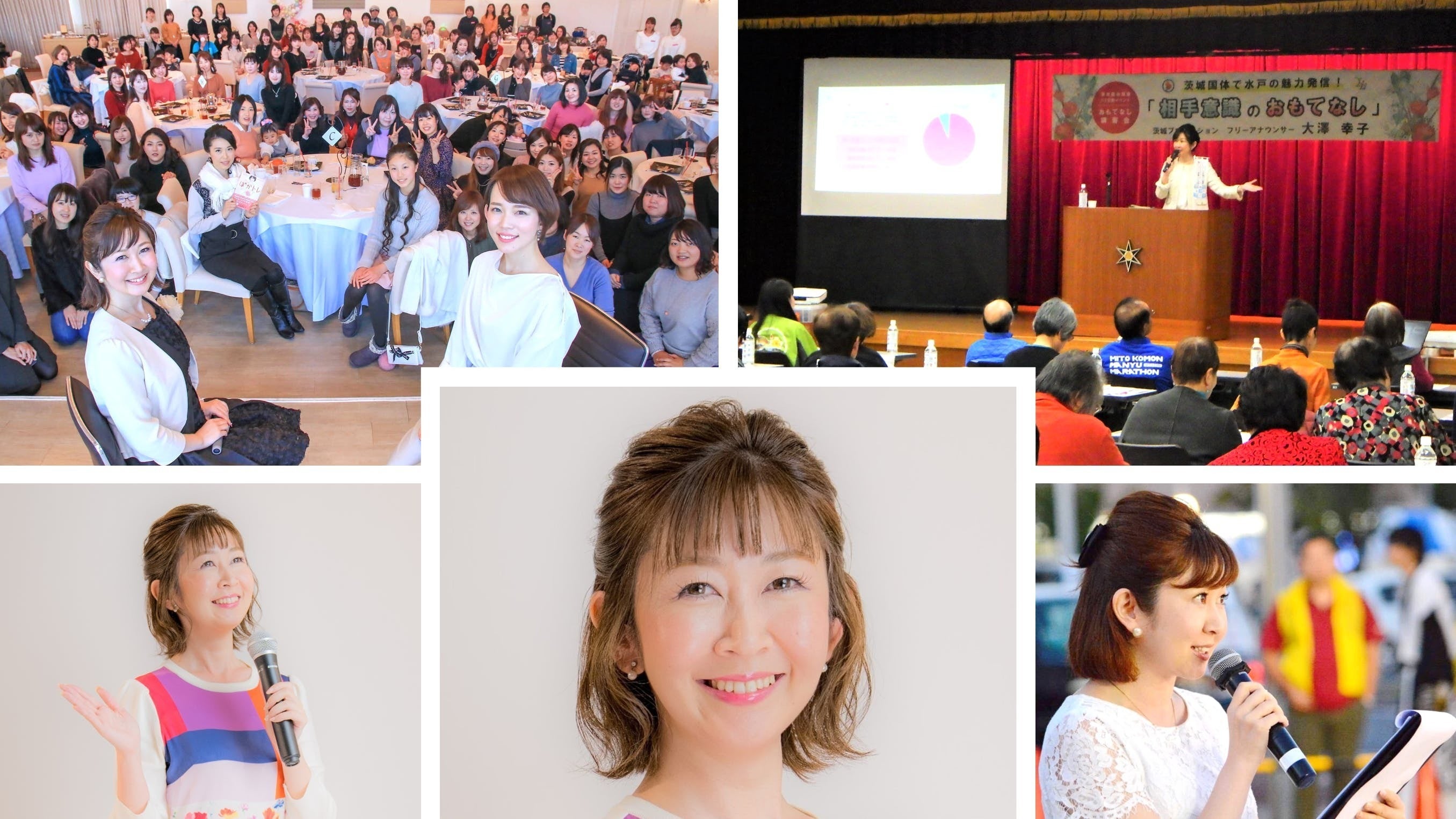 茨城プロダクション代表の大澤幸子と申します。私は、茨城県や水戸市の観光大使を経て、茨城県のインターネットテレビ「いばキラTV」のアナウンサーを務めました。その後フリーアナウンサーとして、県内のテレビやラジオなど各メディアを中心に、番組企画制作から出演まで様々な仕事を行ってきました。