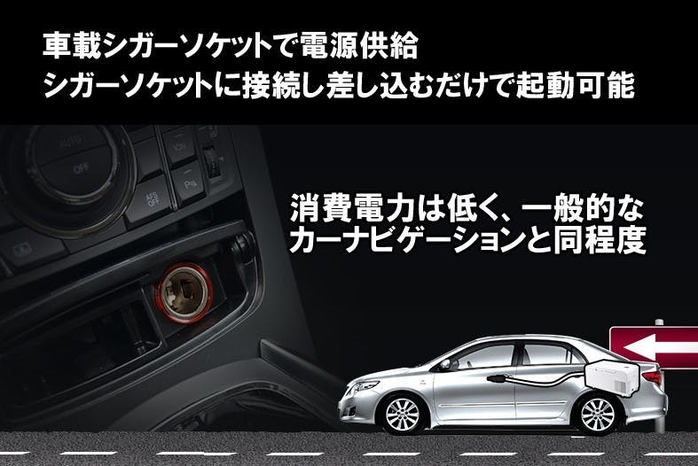 DC電源は12V/24Vに対応可能で、トラックでも使えます。