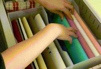 チェストにTシャツを簡単に立てて収納ができ、取り出す時もLPジャケットを選ぶように色や柄を見ながら簡単に選べます。