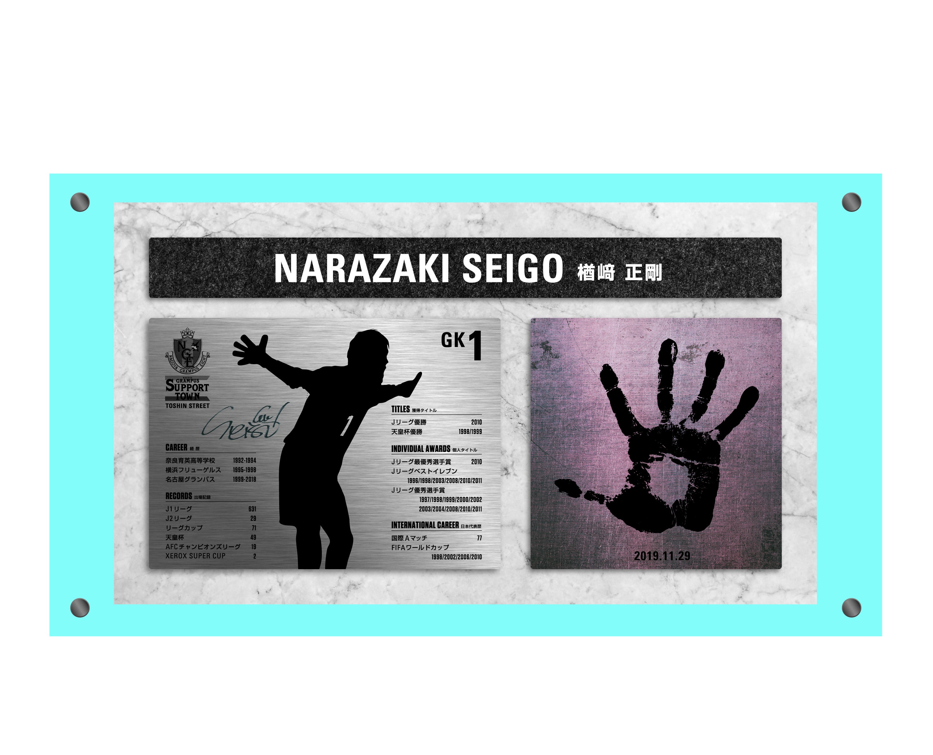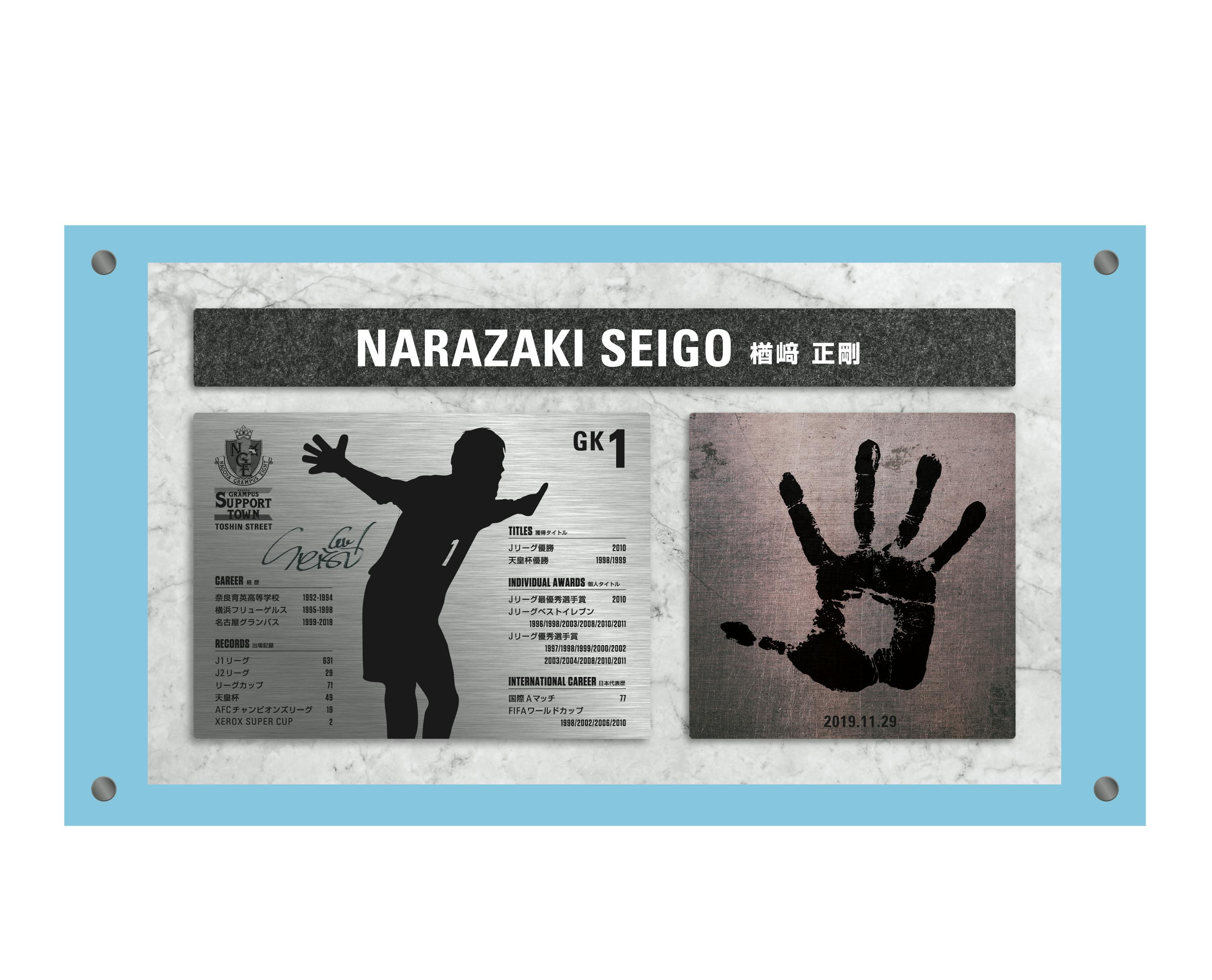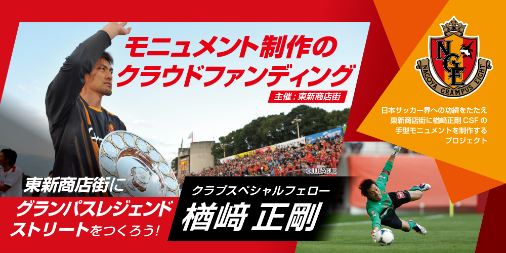 是非とも、「ドラガン・ストイコビッチ選手の足型モニュメント(ピクシーモニュメント)」に続く、「楢崎正剛CSFの手型モニュメントを皆様と一緒に実現し、名古屋グランパスを盛り上げていきましょう!