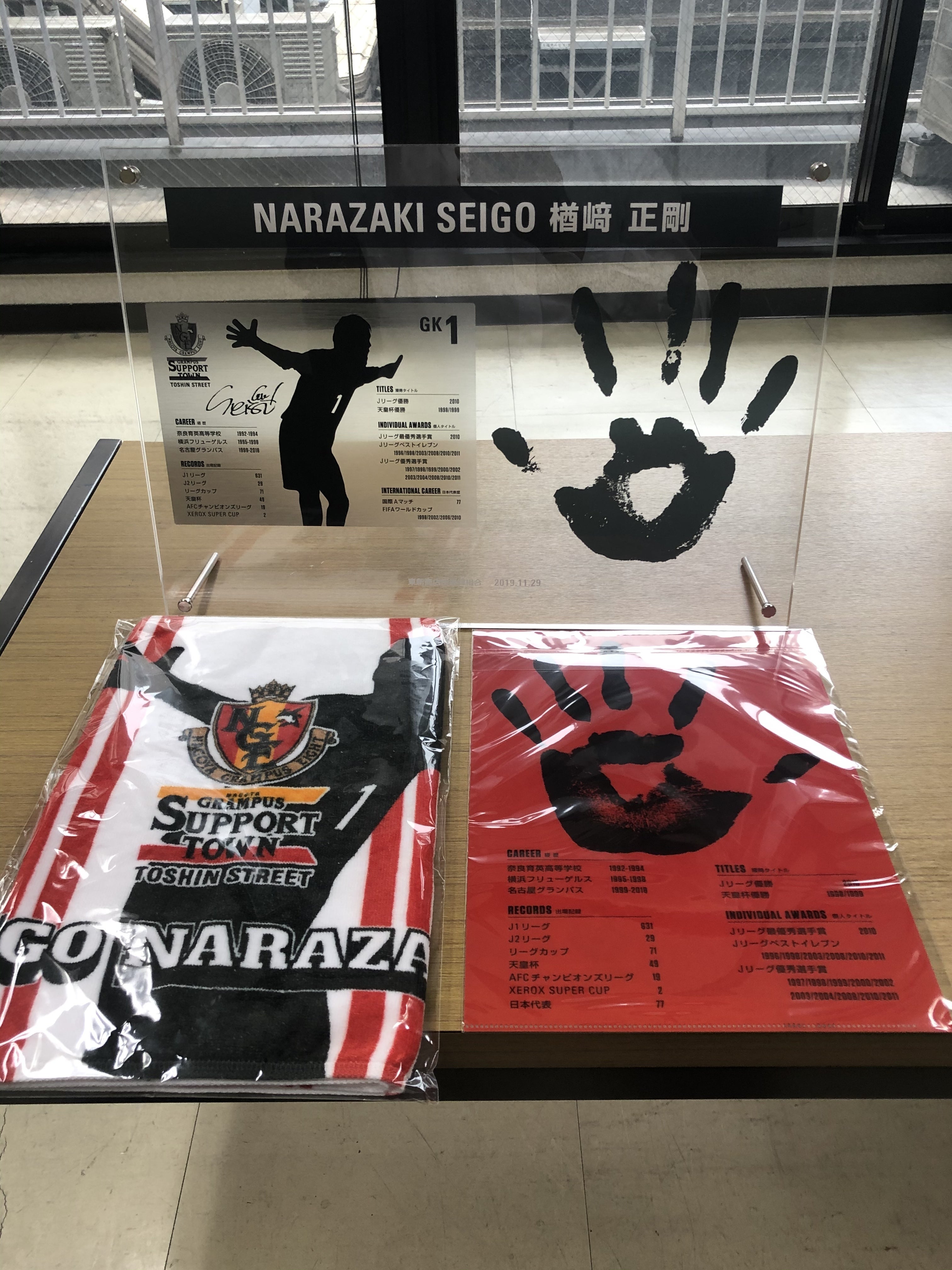 現役時代の記録は下記の通り、横浜フリューゲルス・名古屋グランパスのみならず、まさに日本サッカー界のレジェンドと呼ぶにふさわしく、その功績を称え商店街にぜひ楢崎正剛CSFの手型モニュメントを制作し