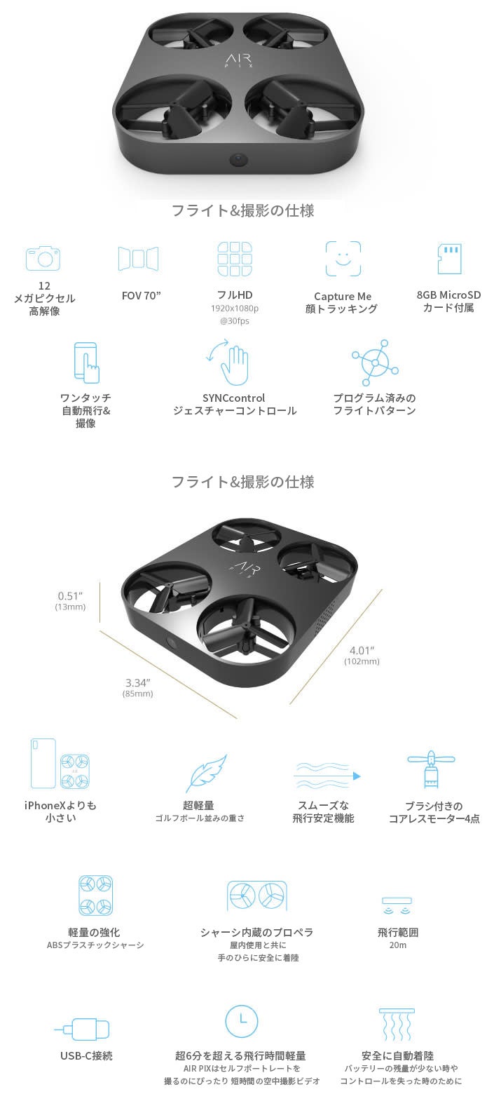 AIR PIXはセルフィー、集合写真やビデオにぴったりであるだけではありません。
