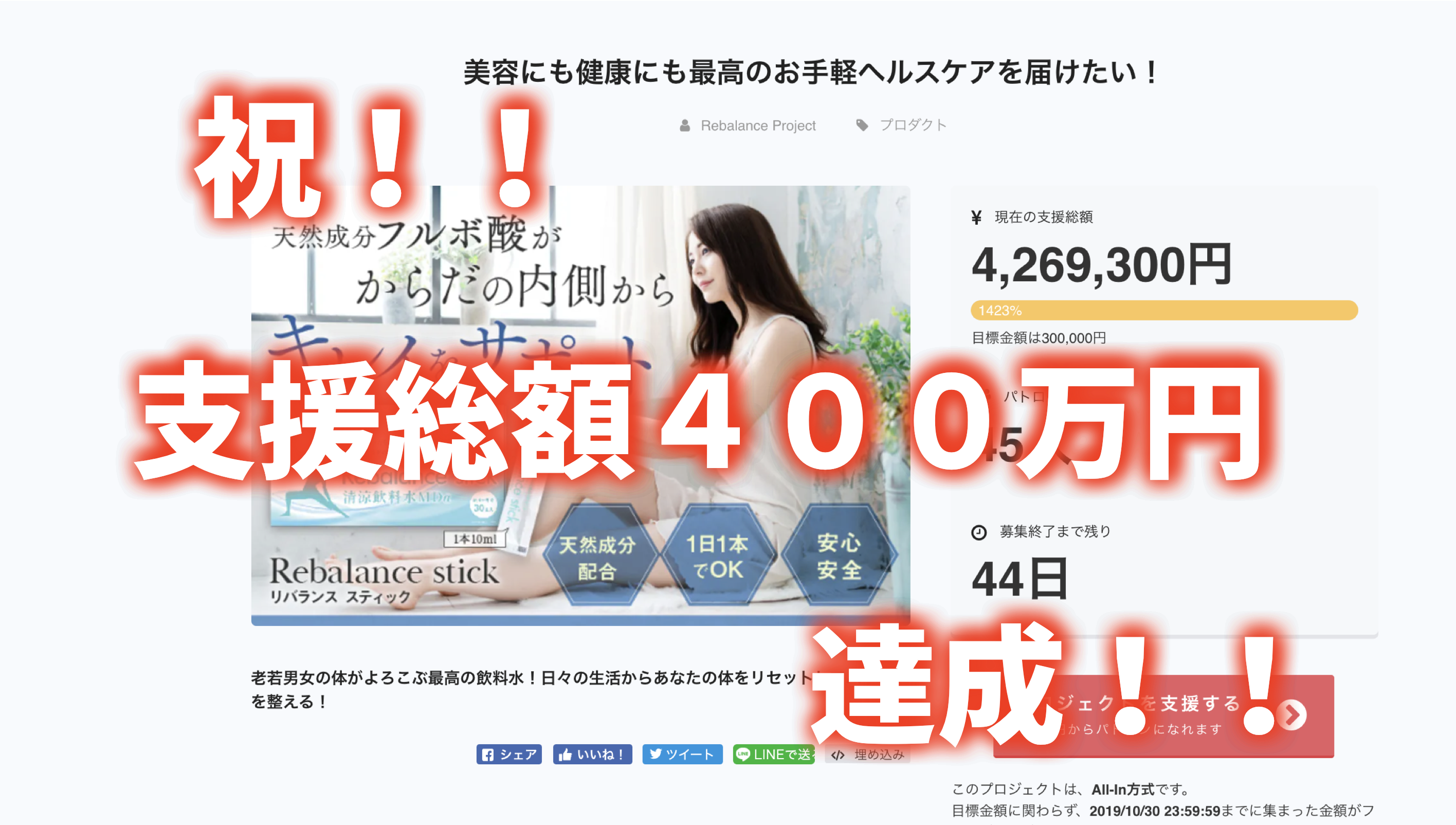 【祝!!達成】400万円ご支援頂きました!