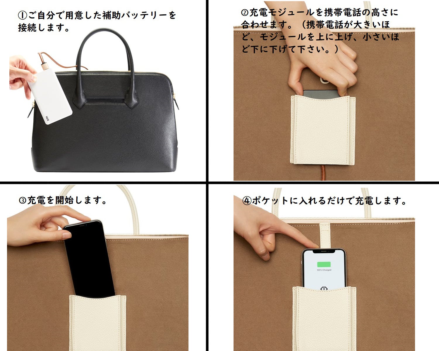 内側ポケットも瞬時に充電を開始します!