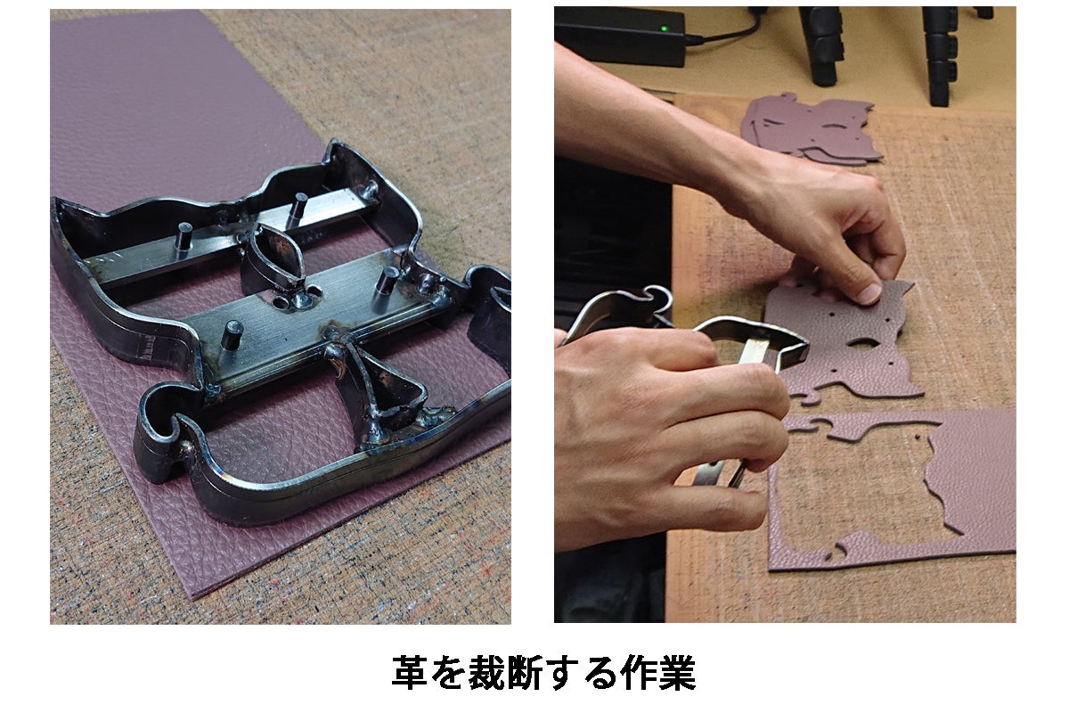 この製品は、シンプルでありながら愛らしく、そして犬種を区別できるようにデザイン化しております。 その為、デザインはカ-ブや反り返り部分が多く、コバ塗りや縫製など全ての作業に高い技術力が要求されるものになりました。