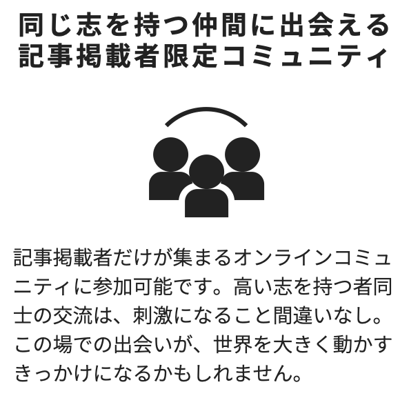 掲載自体に費用はかかりませんが、月額制の記事掲載者限定コミュニティに任意で参加可能です。