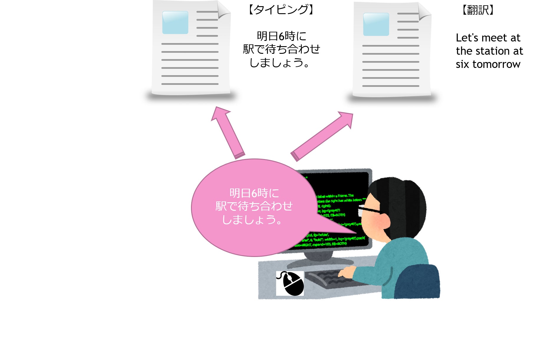 きます。PCの画面上にカーソルがある部分に音声データをテキストに変換しタイピングします。