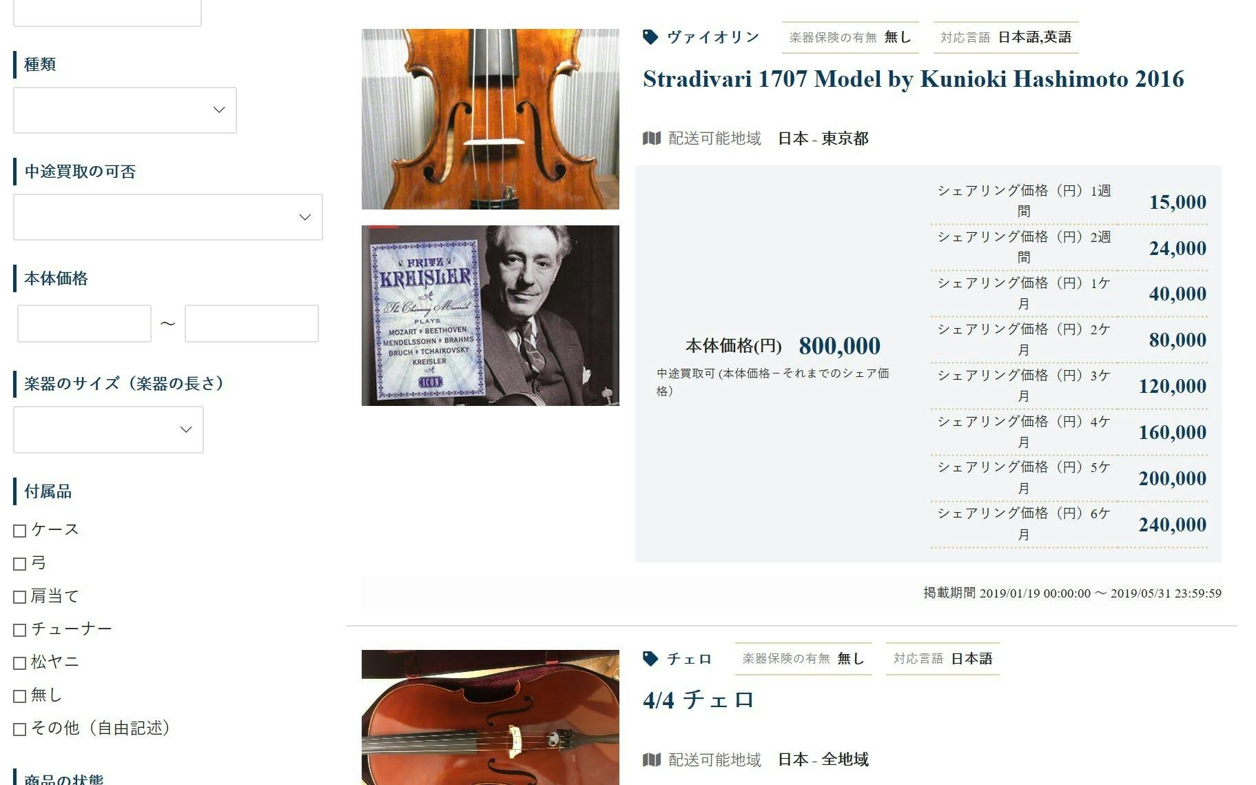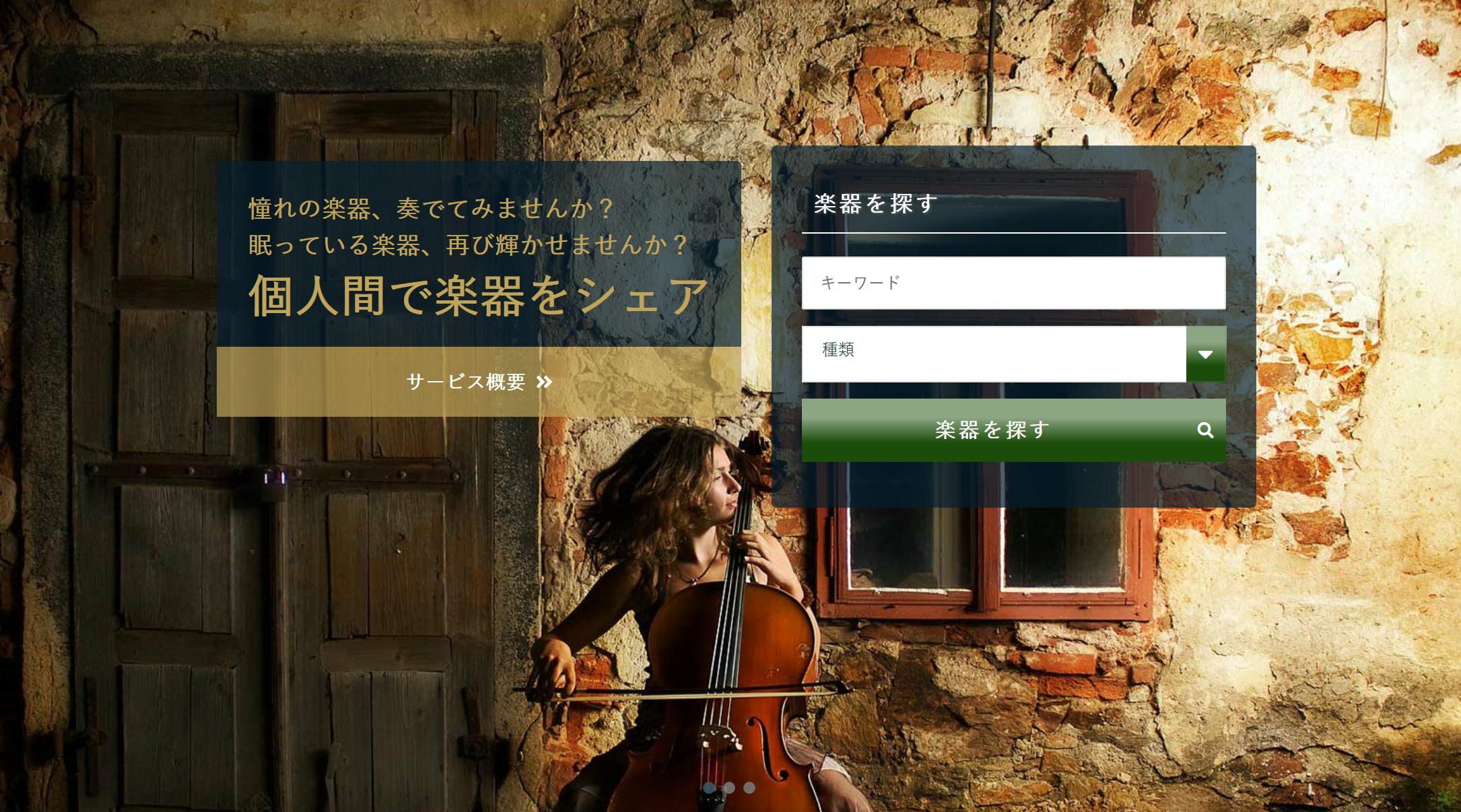 楽器の売却や遊休資産の有効活用をお考えの所有者、奏者との新たな接点を探している楽器職人と以下のような利用者とを繋ぐ楽器のシェアリングサービスです。