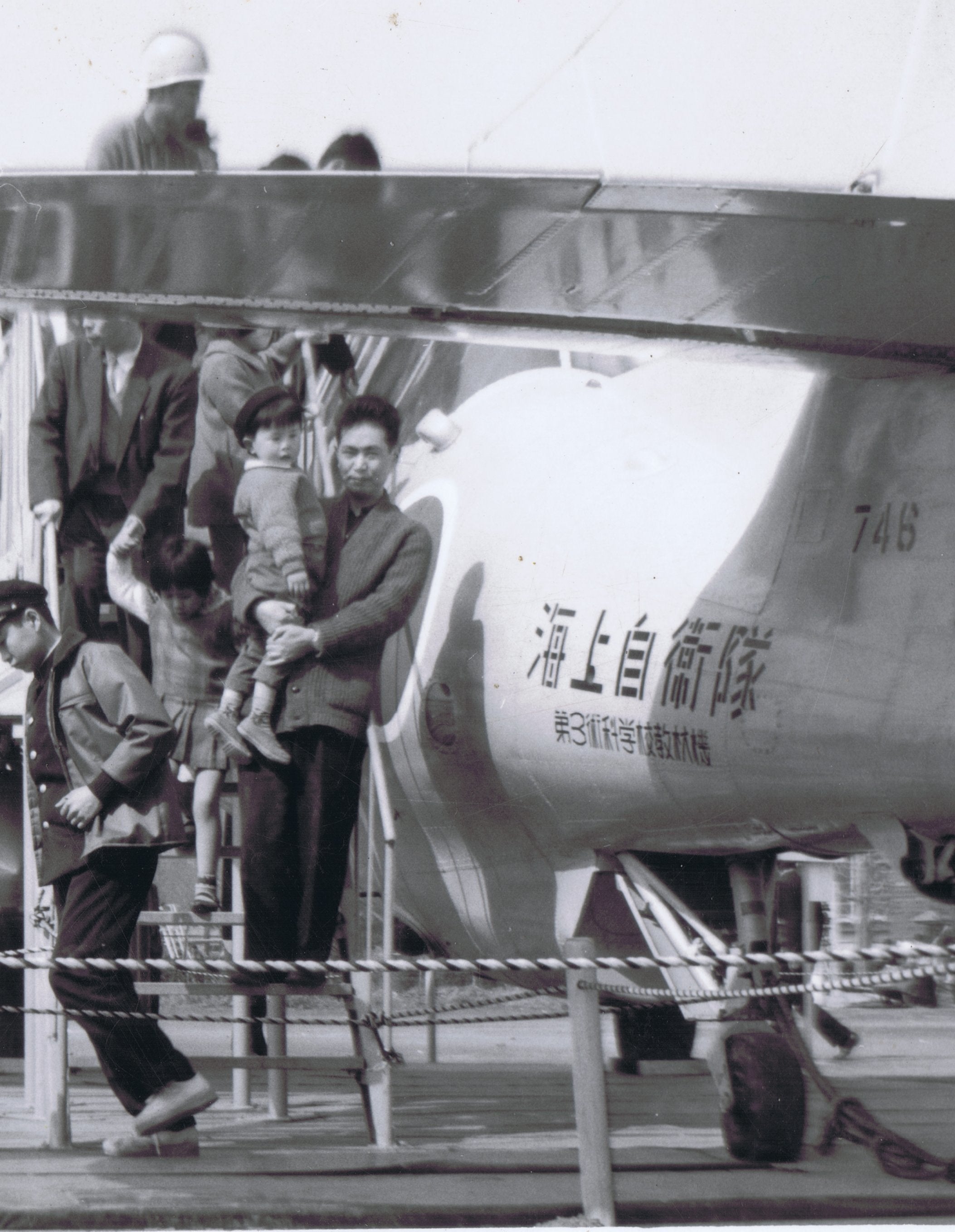 当時の海上自衛隊第3術科学校所属のジェネラルモータースTBM-3S2・アベンジャーのコックピットに乗ろうと父に抱かれている私。