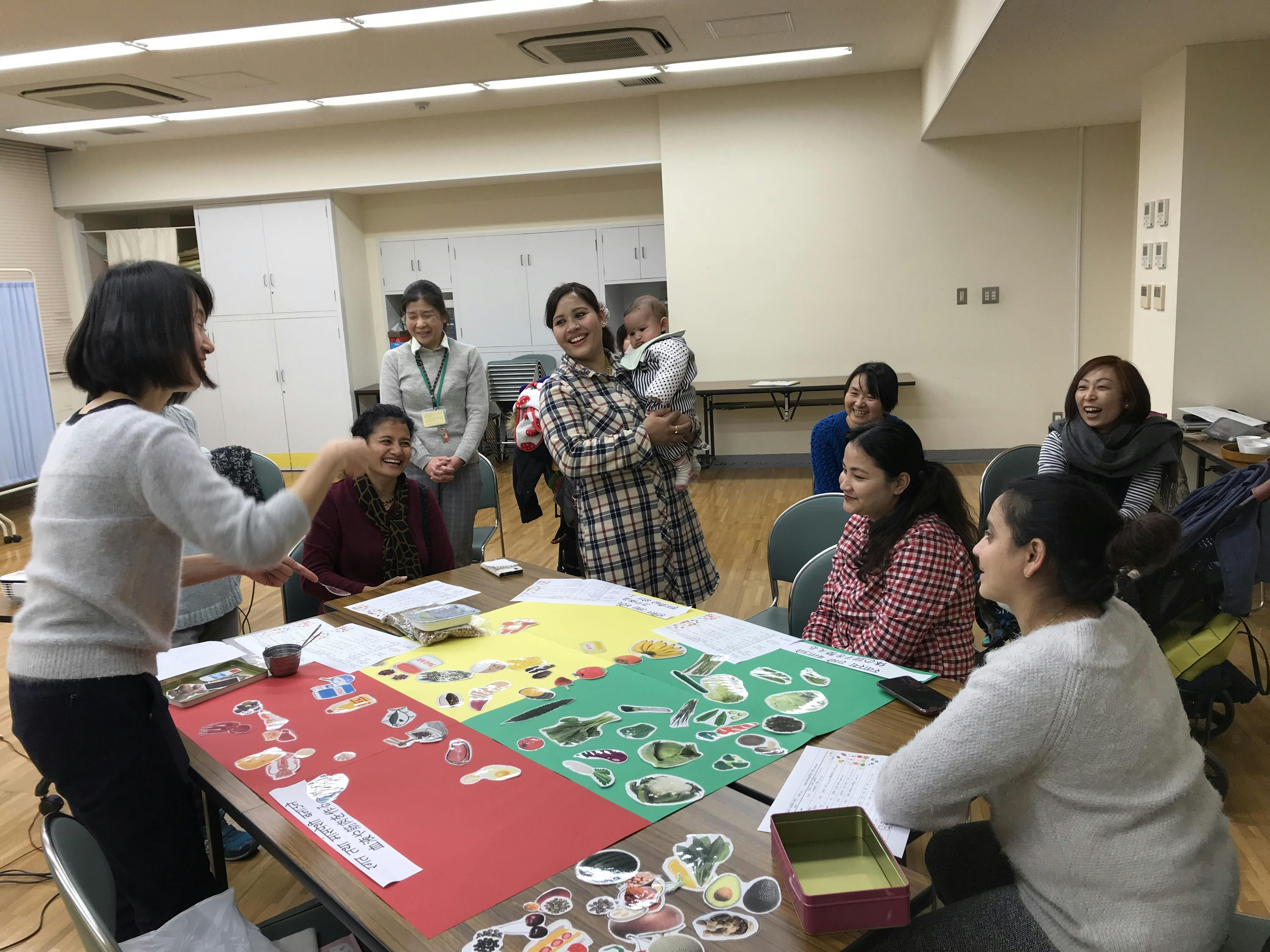2020/01/23 11:58大変ご無沙汰しております。シェア=国際保健協力市民の会の山本です。寒い日々が続きますが、風邪などひかれていませんか。昨年10月のクラウドファンディングではご支援いただき誠にありがとうございました。おかげさまで、Female promoterと呼んでいる保健ボランティアさんたちとともに、活動を行うことができています。1月中には、皆さまのもとへ、寄附金受領証明書(領収書)を発送予定としていますので、ご確認いただきますようよろしくお願いいたします。さて本日は、12月22日に高円寺保健センターと共催で開催しました妊産婦セミナーについてご報告いたします。12月22日ネパール人妊産婦対象セミナーを開催2019年、Female promoterと呼んでいるネパール人の保健ボランティアたちは、妊産婦向けに栄養のセミナーを開催するという計画を立てていました。せっかくなので、妊婦だけでなく3歳以下の子どもを育てるお母さんたちも対象として、高円寺保健センター共催で12月22日に妊産婦セミナーを開催しました。ちょうどその3週間前に、高円寺保健センターがトライアルとしてネパール人妊婦を対象に母親学級を開催していました。その際参加した妊婦さんも参加しやすいよう、同じ高円寺保健センターで開催させていただきました。今回は、栄養だけでなく、ネパール人の中には、妊娠中、出身地域や民族の伝統的習慣の影響で、歯の手入れを避ける人がいることから、妊婦に歯科健診の必要性を伝えられるよう、歯科衛生についても取り上げることとしました。地域の“保健センター”についての理解が広がっている?当日は、雪が降りそうなとても寒い日となりました。参加者は誰もいないかもしれない、と覚悟していましたが、それでも3名の方が参加してくださいました。参加者たちが到着してすぐ、「あれ、なぜネパール人がこんなに来ていないの?」「もっと来ていると思った。来たらいいのに」というつぶやきが聞かれました。“せっかくの機会なのにもったいない”、というような発言に、言葉の問題が解決すれば、実は参加のモチベーションが高い人たちも多いのではないか、と感じました。また、「保健センターからの手紙が来たから開けなければいけないと、と思って開けた。」「何が行われるか良くわからなかったけど来た。」という声も聞かれ、保健センターからの案内なら行ってみよう”という行動に至っていることがわかりました。保健センターから何か得られるものがあるということが理解できている、ということです。参加者のうち1人は、過去にシェアがFemale promoterとともに妊娠中と出産後に訪問したお母さんでした。訪問の度に、保健センターからの手紙は捨てないように、必ず開けるようにと説明してきたお母さんです。移動の際も夫の同伴がないと難しかったお母さんが、今回は“ママ友”と来てくれるまでになり、うれしくなりました。保健センターからは、対象の方々にネパール語で作成したチラシを送っていました。その際、封筒の表にネパール語で「母親学級」というネパール語文を張り付けてくださっていました。手紙が自分たちネパール人に向けであることが明確で、その効果も大きかったと思います。実演交え自分の歯と向き合えた歯科衛生セミナー今回は、ご縁があり、「ネパール歯科医療協力会」の歯科衛生士、白田さんに講師としてご協力いただきました。白田さんは自治体の歯科衛生士としても活躍されながら、30年以上ネパールでも活動されてきました。歯の手入れの必要性や、自分の歯の状態のチェック方法、手入れの方法として磨き方やフロスの使い方、食事の際はよく噛むようにすることなど、わかりやすいように、実演や目で見て伝わる方法などを用いながら、説明してくださいました。参加者からは、「爪楊枝をつかうなどして、自分の歯の状態をチェックする方法がわかってよかった」など、いろいろな感想が聞かれました。鏡を用いて、自分の歯や歯茎の状況をチェック!笑いが絶えなかった栄養セミナー2018年に初めてシェアの健康相談会で開催した、沐浴と栄養教室に協力してくださった、栄養士さんに、今回も講師をお願いしました。今回はまず3つのグループに食材を分け、1つのグループに偏った食事をしないようにバランス良くたべることや、食べる量を意識できるように、目でみて伝わるように工夫しながら説明してくださいました。油、どのようにフライパンにそそぐか、という質問に対して、参加者は、「量は意識せず直接ドボドボとフライパンに注いでいる」という回答でした。大さじを見せながら、適量を説明してもらうと、「普段の使用量は多すぎだわ」と笑いながら、みんなで盛り上がりました。ネパールは大きなお皿いっぱいにご飯(お米)が盛り付けられることもあるということで、1回に摂取するのに適正なご飯の量も栄養士さんが説明してくれました。終了後、「適切なご飯(お米)の量がわかってよかった。」と