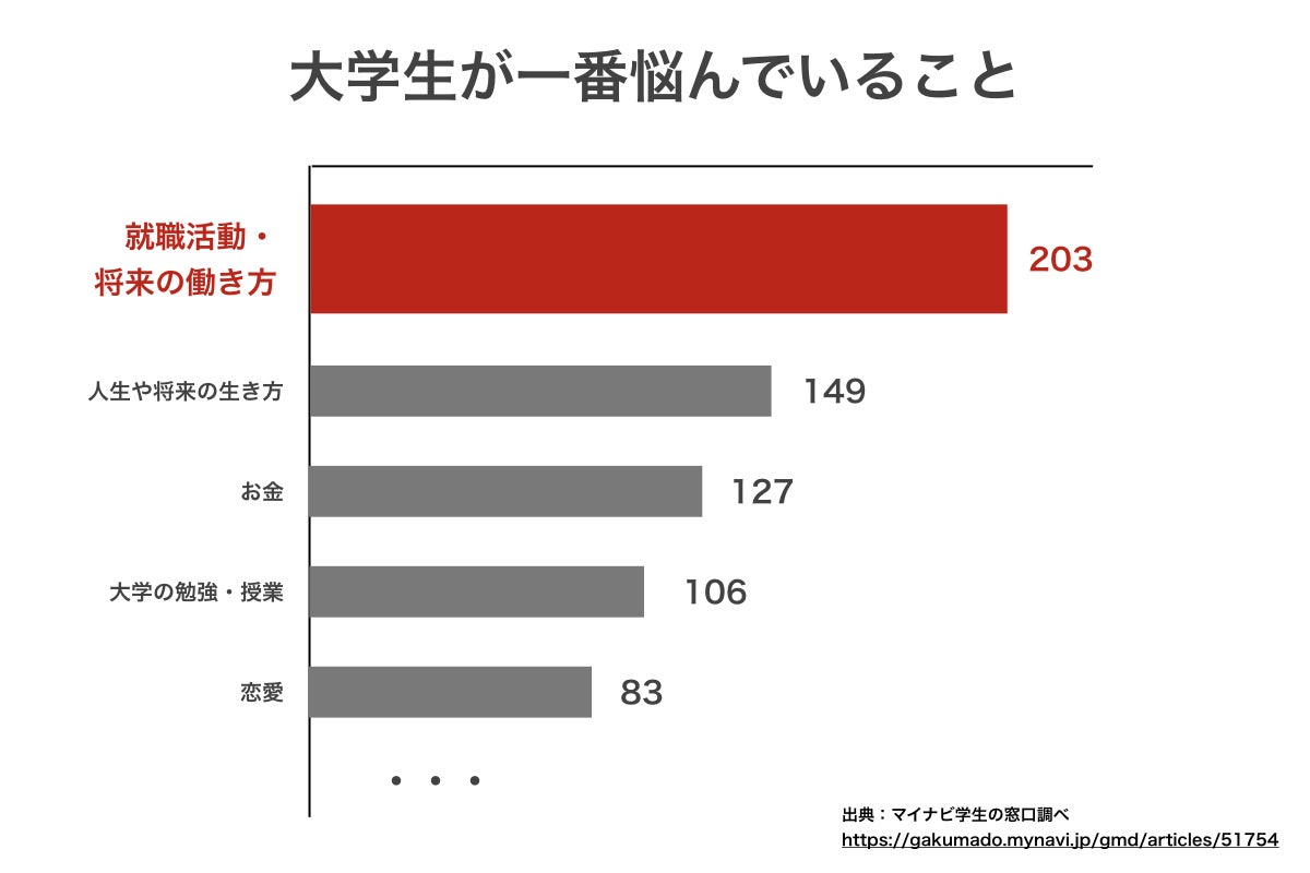 マイナビの調査(※4)によると、学生の一番の悩みは、「勉強」でも「恋愛」でもなく、