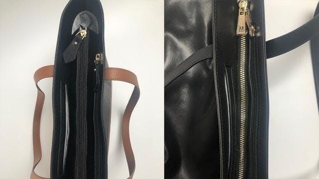バッグ上部には2つのポケットを搭載。一方はジッパー無し、もう一方はジッパー付きで小物類を用途に応じて使い分けしていただけます。