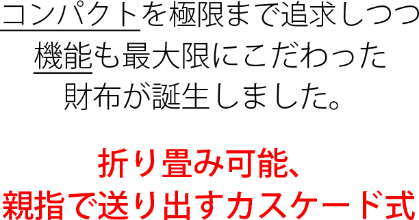 カードの端に親指を当て、スライドさせるだけでカードを自在に出し入れできるカスケードタイプです。