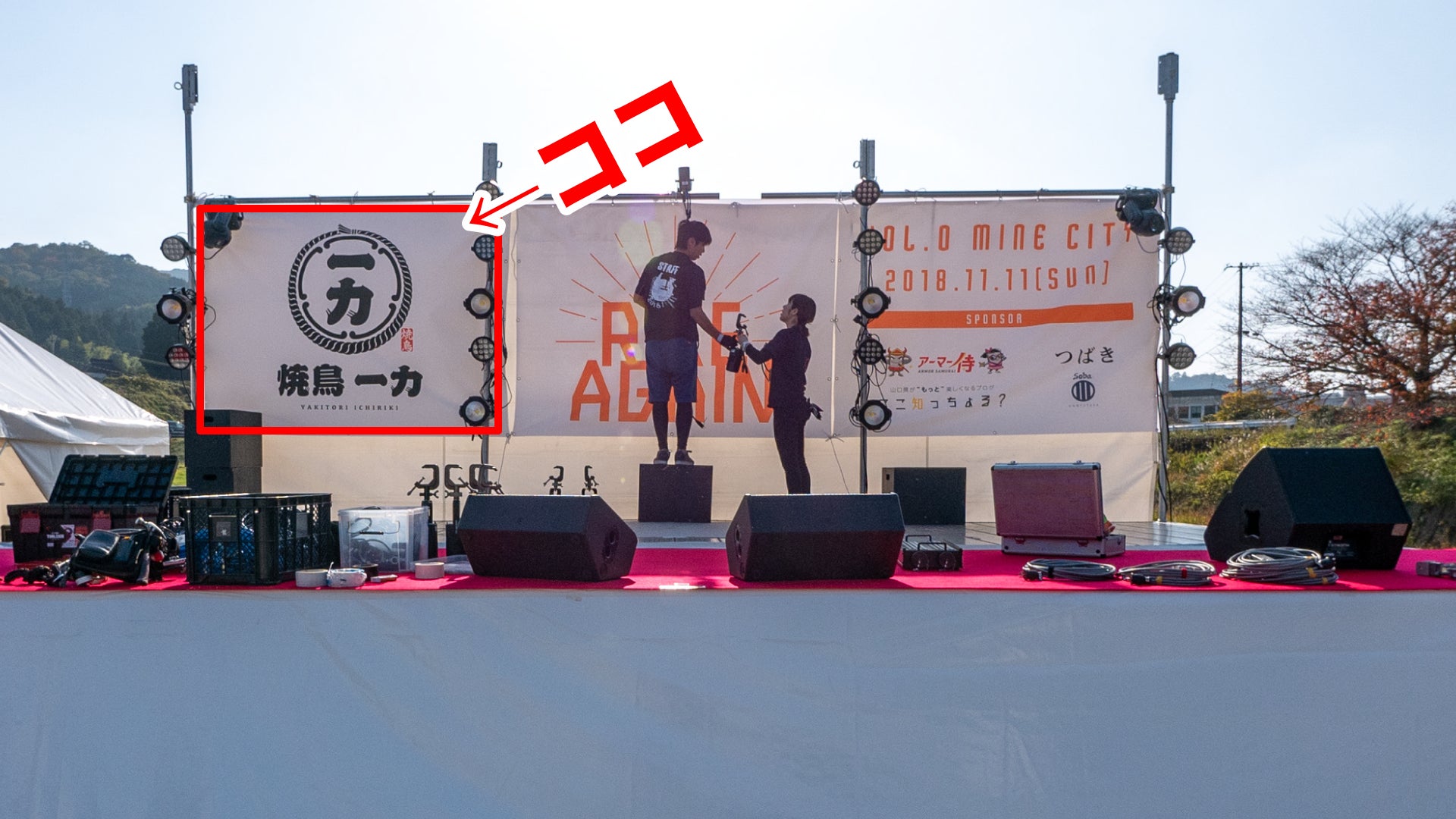 企業向けのリターンの中でも注目なのが、メインステージの一番目立つバックドロップに特大サイズ(W2400×H1800)の企業ロゴを掲載できるプランです。
