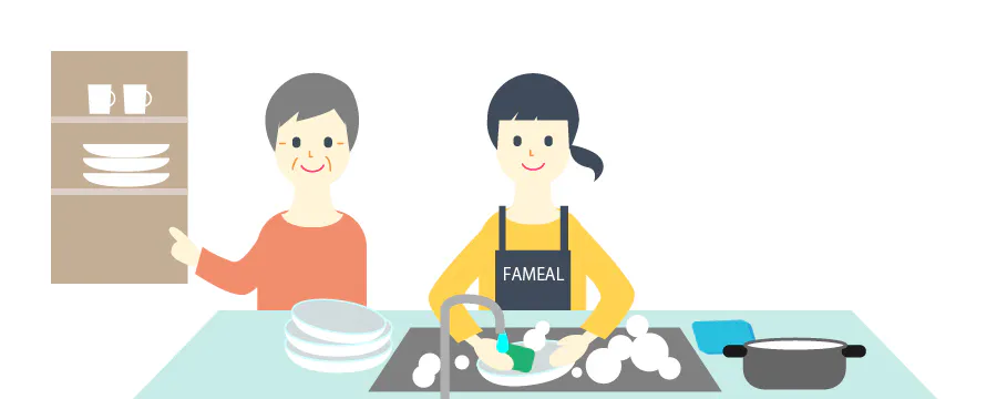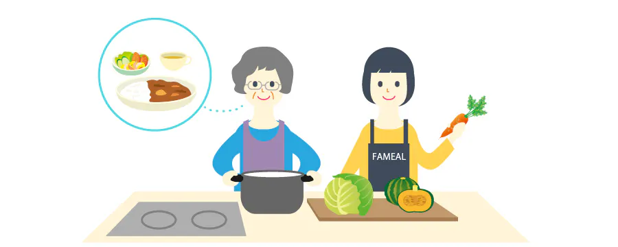 FAMEALは、60歳以上のシニア層の方々を対象とし、お客様のご自宅で“一緒に”料理を作り、