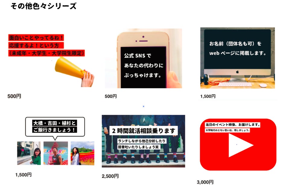 そしてその他にもイベントに関するリターンから、私たちとご飯行きましょう!なリターンまでご用意しております!