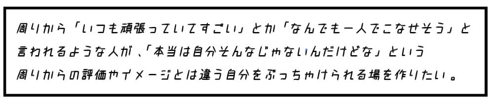 「いつもたくさんの人から頑張ってるね、お前なら大丈夫だよ!と言われるけれど、大丈夫じゃない時だってある。」