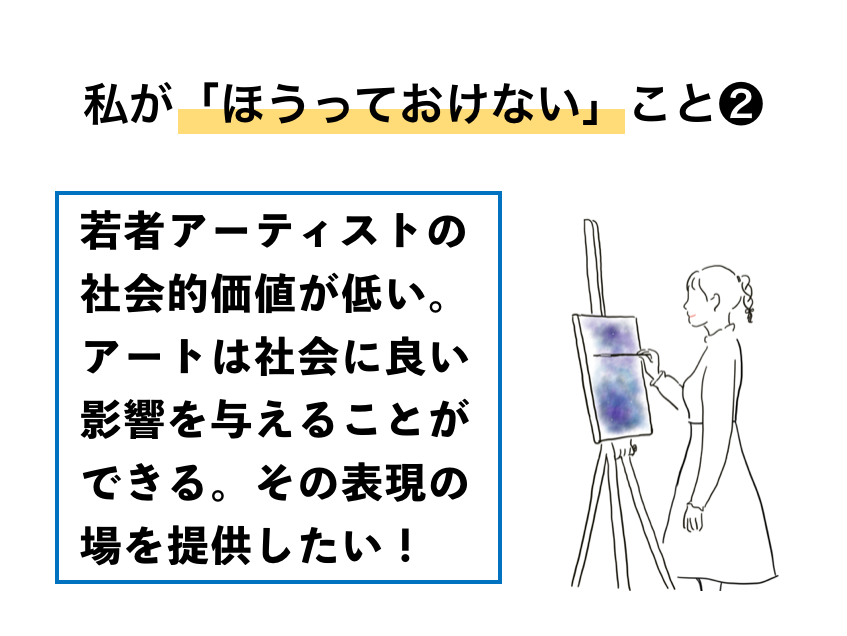 このプロジェクトは、私自身が感じた「ほうっておけないこと」を解決するために行います。私の夢である”アートで溢れる病院”を目指した第一歩として全力でプロジェクトを進めていくので、ぜひご支援よろしくお願いいたします!