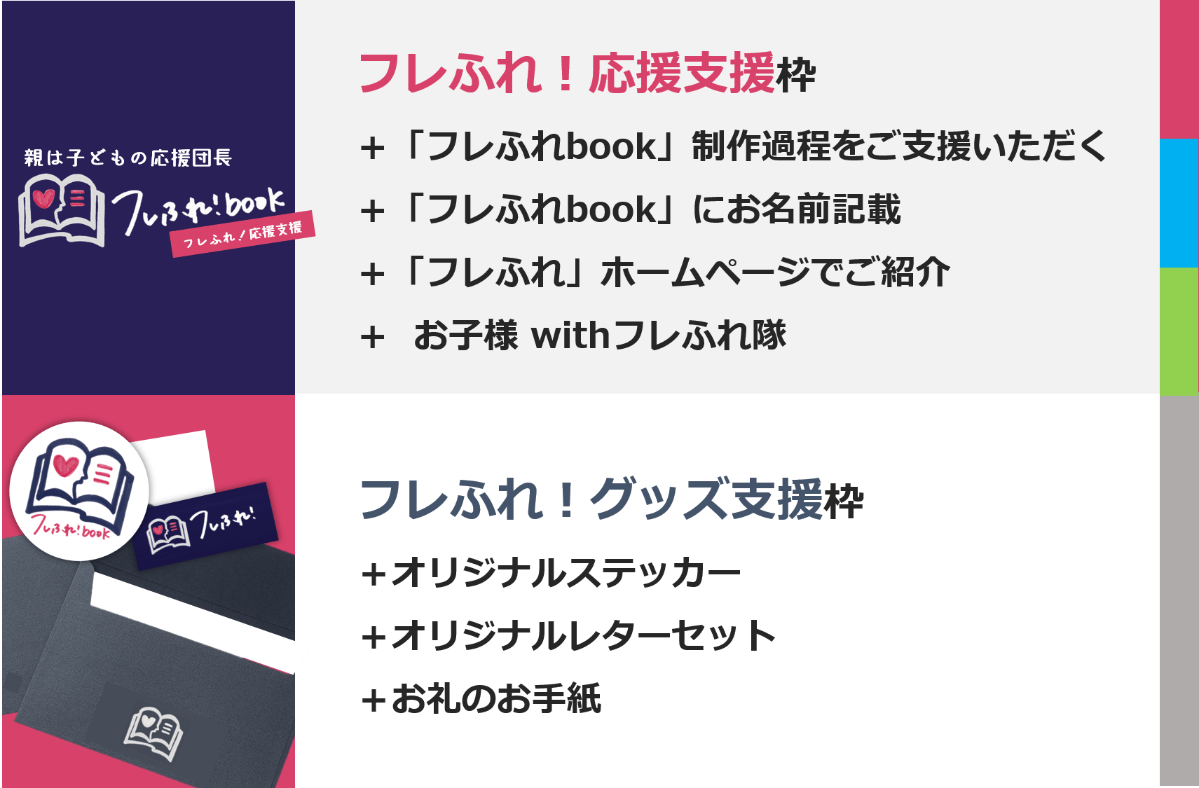 たくさんの試練に小さいころから立ち向かう「子どもたち」に、読むだけで、目にするだけで勇気が出る、前向きになれる、親の愛情という"応援"が詰まった「フレふれbook」を作りたいと考えています。