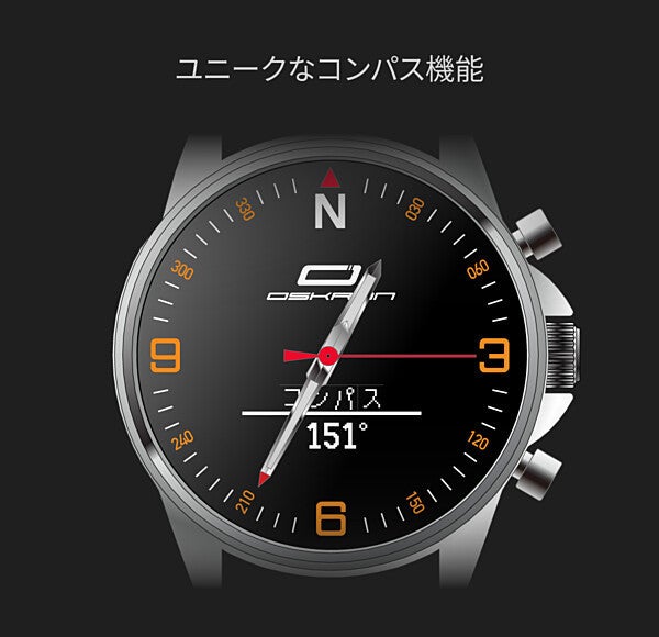 OSKRONに搭載されているコンパス機能を使えば、ワイルドに大自然を満喫することができます。地図に頼らない、アウトドアの新しい遊び方を手に入れられることでしょう。