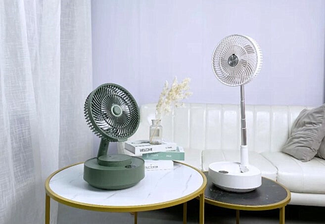■伸縮自在の折りたたみ式設計で卓上扇風機からリビング扇に変化可能