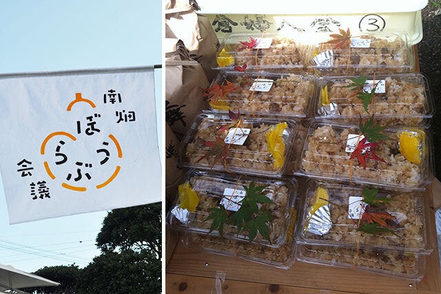 ↓寺倉区のお母さんたちが提供してくださる那珂川名物「かしわ飯」(ぼうぶら会議より)