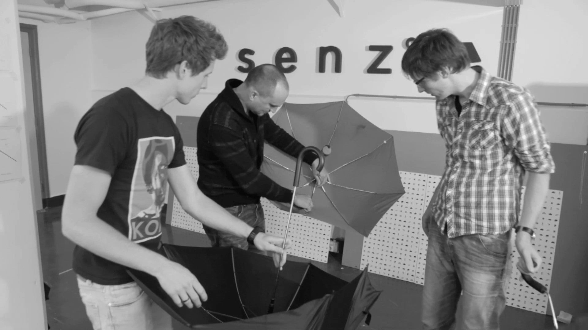 そこに疑問を持ったオランダデルフト工業大学の学生は、5分で基本コンセプトとなるスケッチを書き上げ、市中で購入した2本の傘から1本の試作品を作り上げました。これがSENZ゜の始まりです。