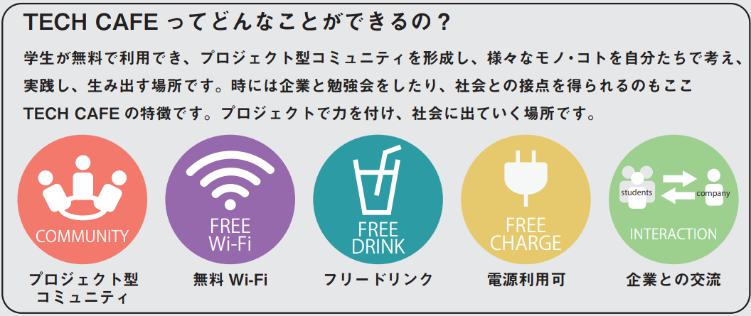 このような状況を踏まえ、TECH CAFEは学生たちに以下の3つを提供します。