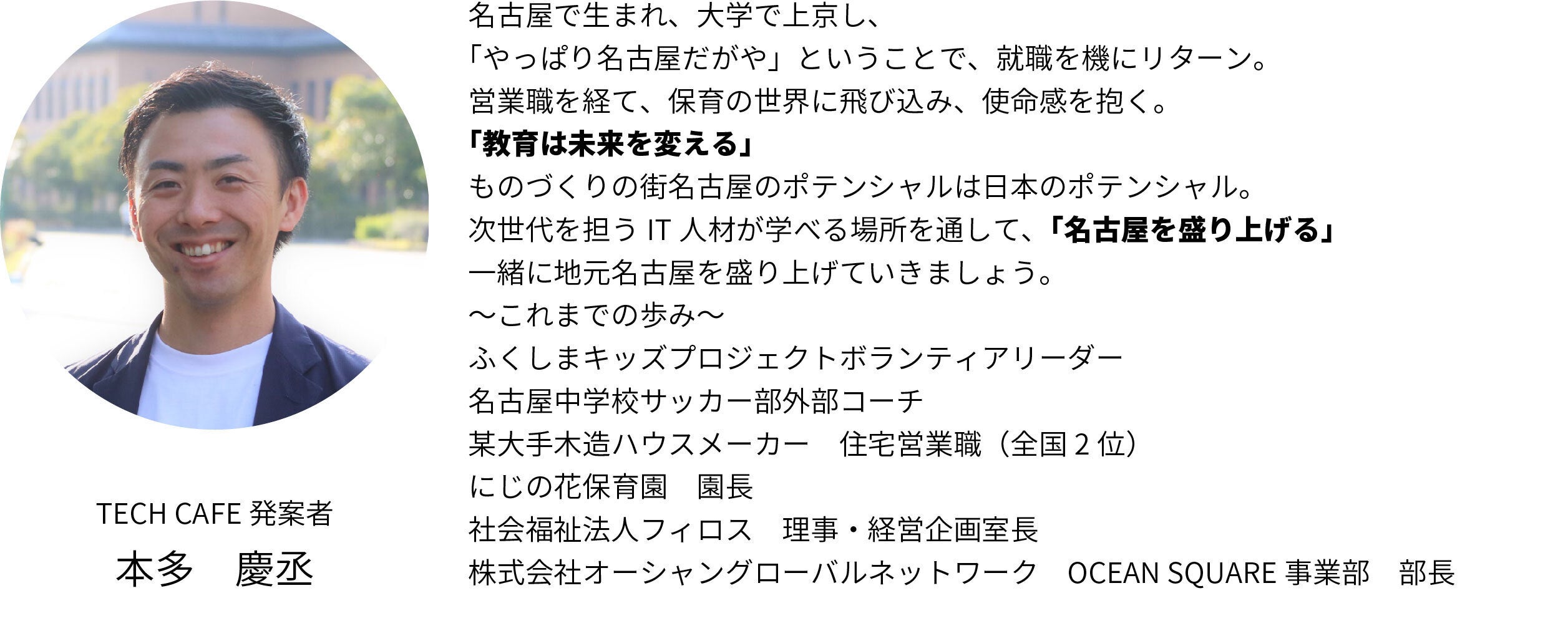 TECH CAFE発案者の本多慶丞(ホンダケイスケ)です。