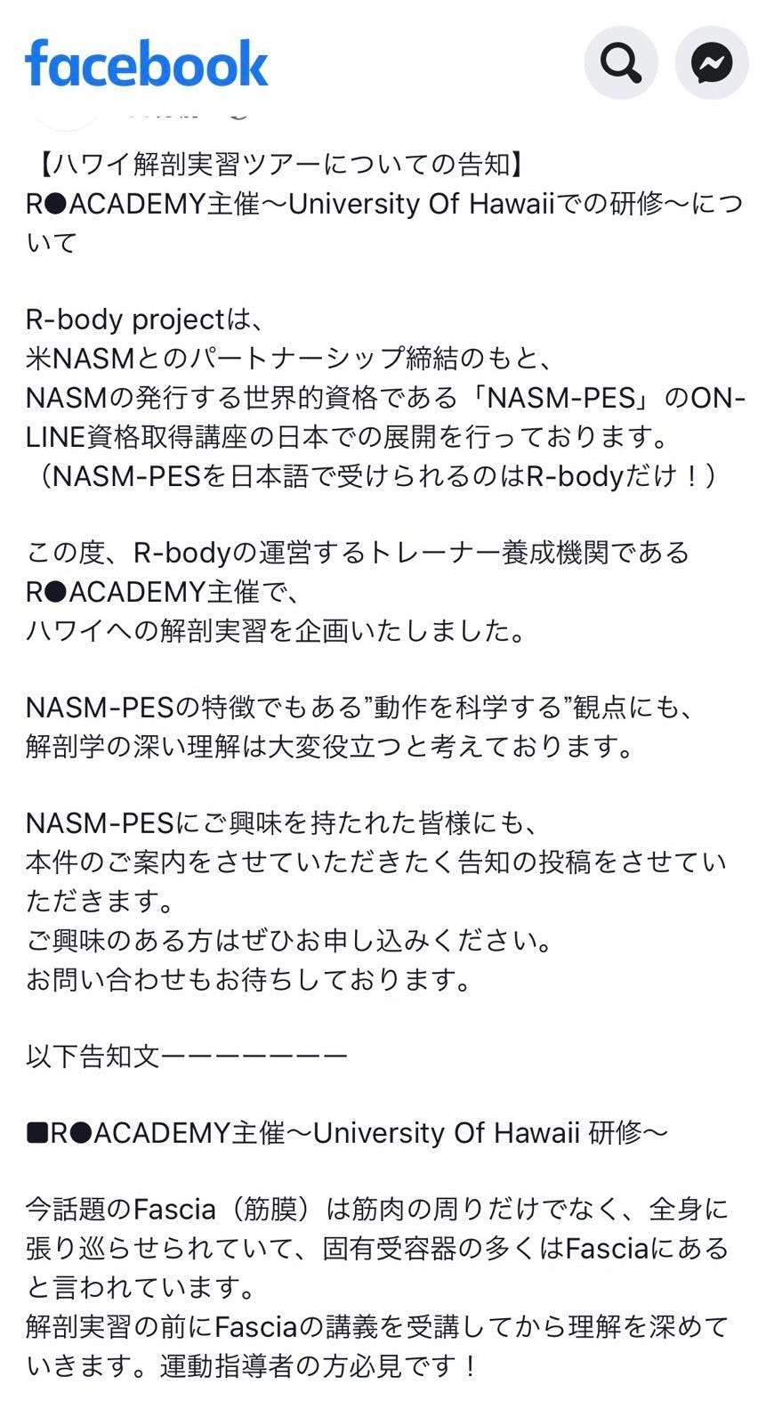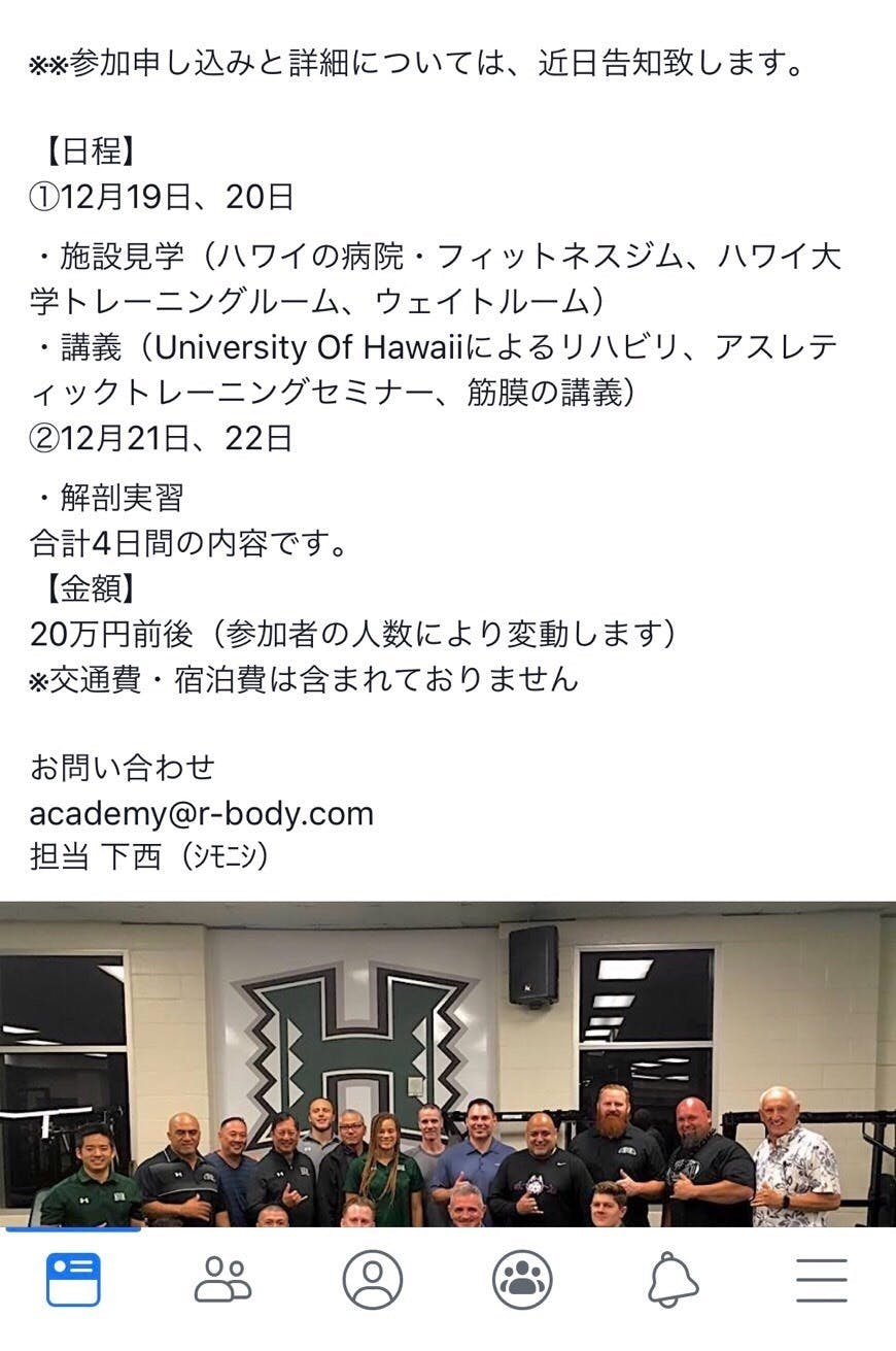 2019年12月19日から22日にハワイにて行われるR-ACADEMYの「人体解剖実習」と「アスレティックトレーニング」研修プログラムに参加します。