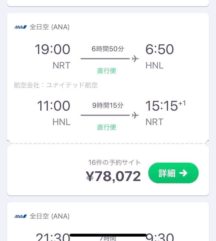 ・成田空港からハワイ国際空港までの往復航空券:約8万円