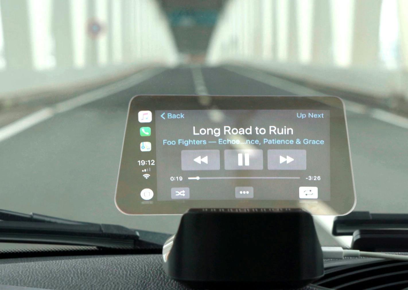 Siri等の音声アシスタントに「〇〇を再生」と指示すれば一発選曲。膨大なリストからアーティスト名を選んで、曲名を選んで、、、などと面倒な手間はいりません。再生中の曲名も、HUDのスクリーンで道路から視線をそらさずすぐ確認できます。