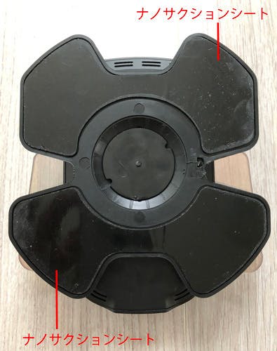 下の写真は底部裏面です。台座部はシリコンラバーの柔らかい素材のためある程度の曲面でも貼り付けられます。