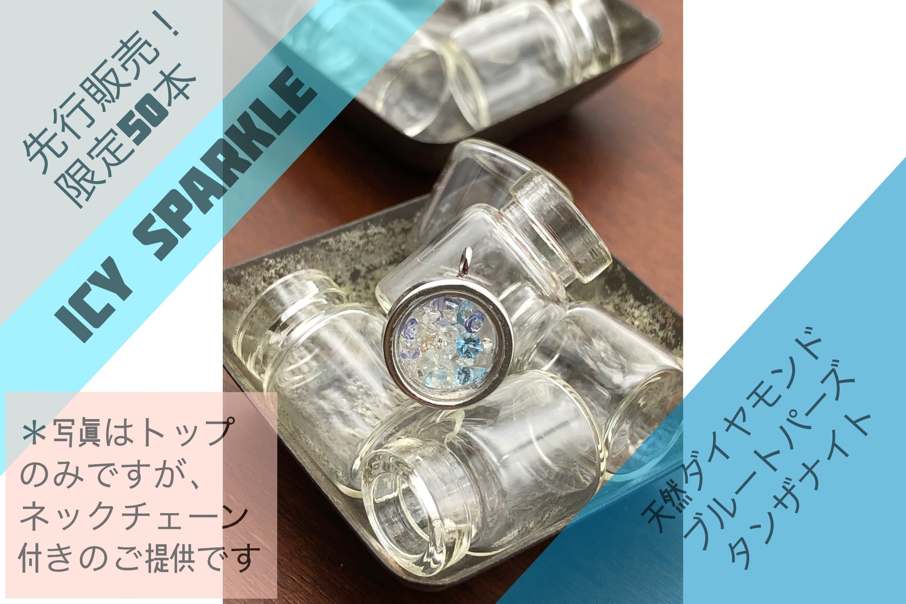 天然であるがゆえに、内包物と言われる不純物が多いダイヤモンド、又は流通の過程で少しキズがついてしまったなどの理由によりジュエリーとして日の目を見ることの無い天然ダイヤモンド達を、小さな小瓶に詰めてお送りしたいと考えてこのプロジェクトを立ち上げました。この可愛いダイヤモンドたちを皆さまにお使い頂きまして、資金を調達し新たな創作活動に充てたいと思います!
