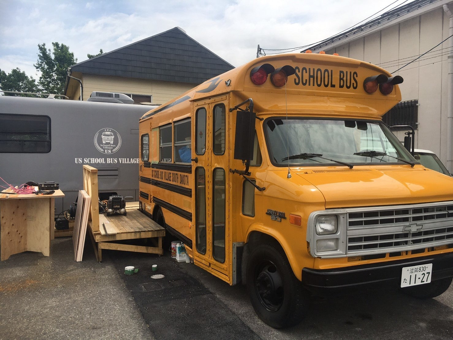 第二弾としてレンタカー事業で使用するアメリカのスクールバスをキャンピングカーに改装する計画を立てています。現在スクールバスの輸入は済んでいて、改装を待っている段階です。