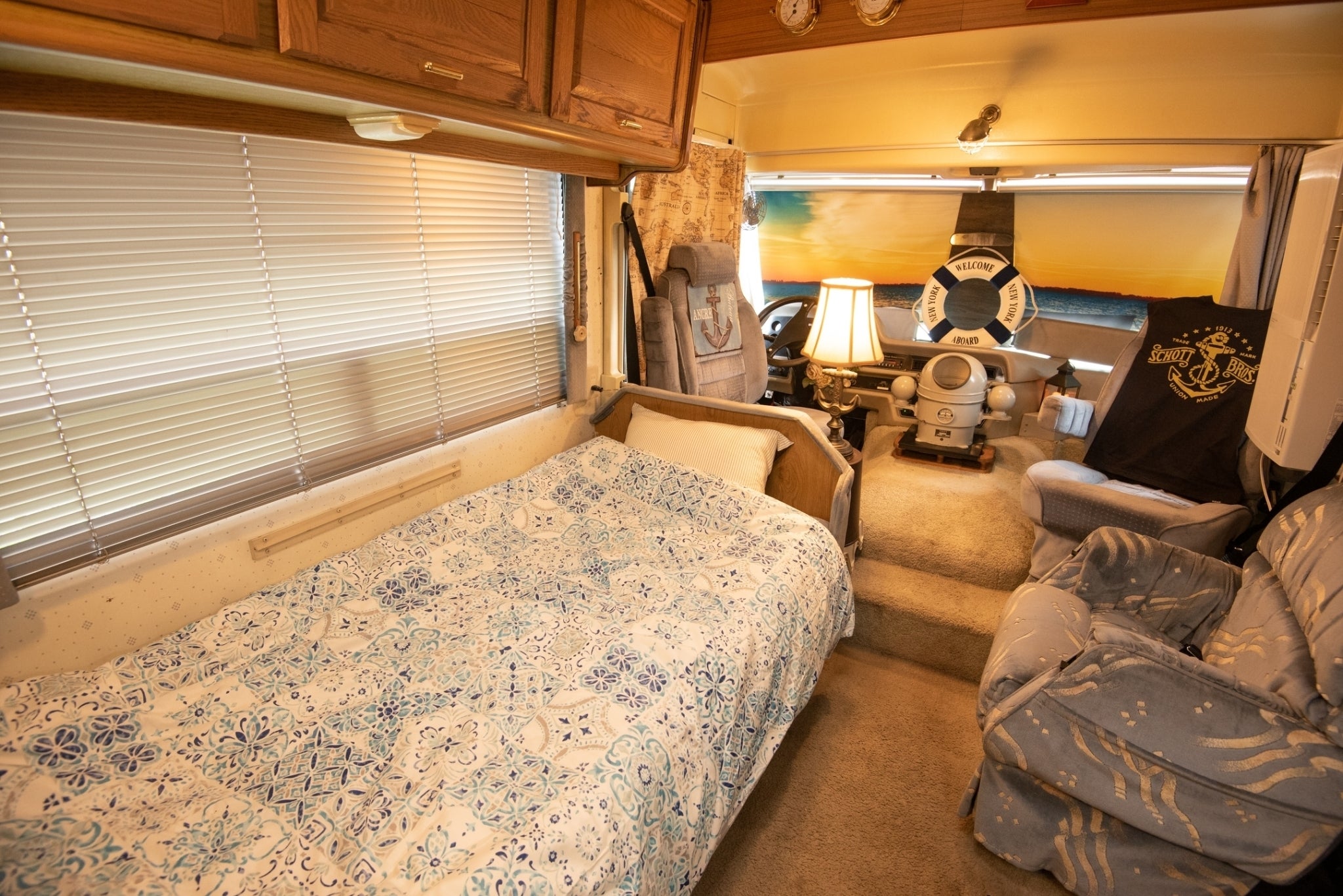 スクールバスにはベッドが2台とバスタブ付きのバスルーム・トイレが付いています。