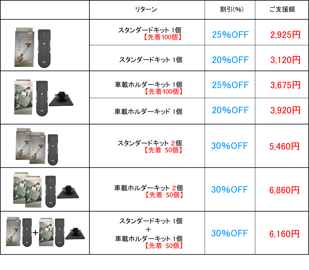 2019/10/31 17:05ご支援者のみなさまへこの度は、CAMPFIRE「SLIM SMART SHUTTER」プロジェクトにご支援を頂きありがとうございました。本プロジェクトは、2019年10月30日23:59を持ちまして終了いたしました。ご支援また応援して頂き誠にありがとうございました。スタッフ一同、心より感謝申し上げます。本当にありがとうございました!皆さまのお陰をもち、「SLIM SMART SHUTTER」は無事に目標金額を達成致しました。リターン製品はすでに準備が整い、明日11月1日にすべて配送完了を予定致しておりますお届けまでお楽しみにお待ち下さいませ。これからも皆さまに魅力的なプロジェクトをお届けできるよう頑張っていきます。どうぞ引き続き宜しくお願い申し上げます。ありうがとうございました。LISTYC スタッフ一同 もっと見る
