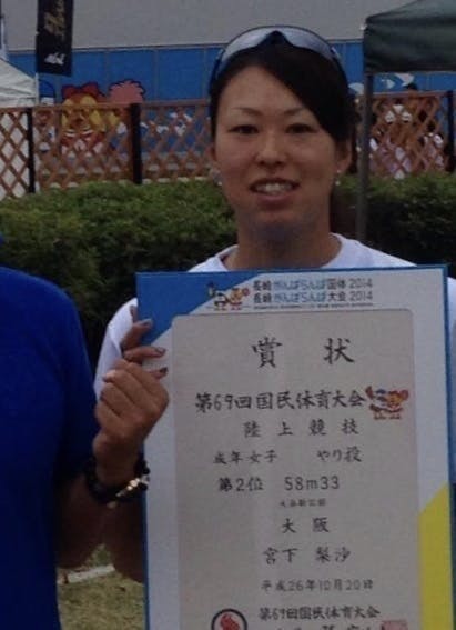 大阪府出身、現在35歳の女子槍投げ選手です。