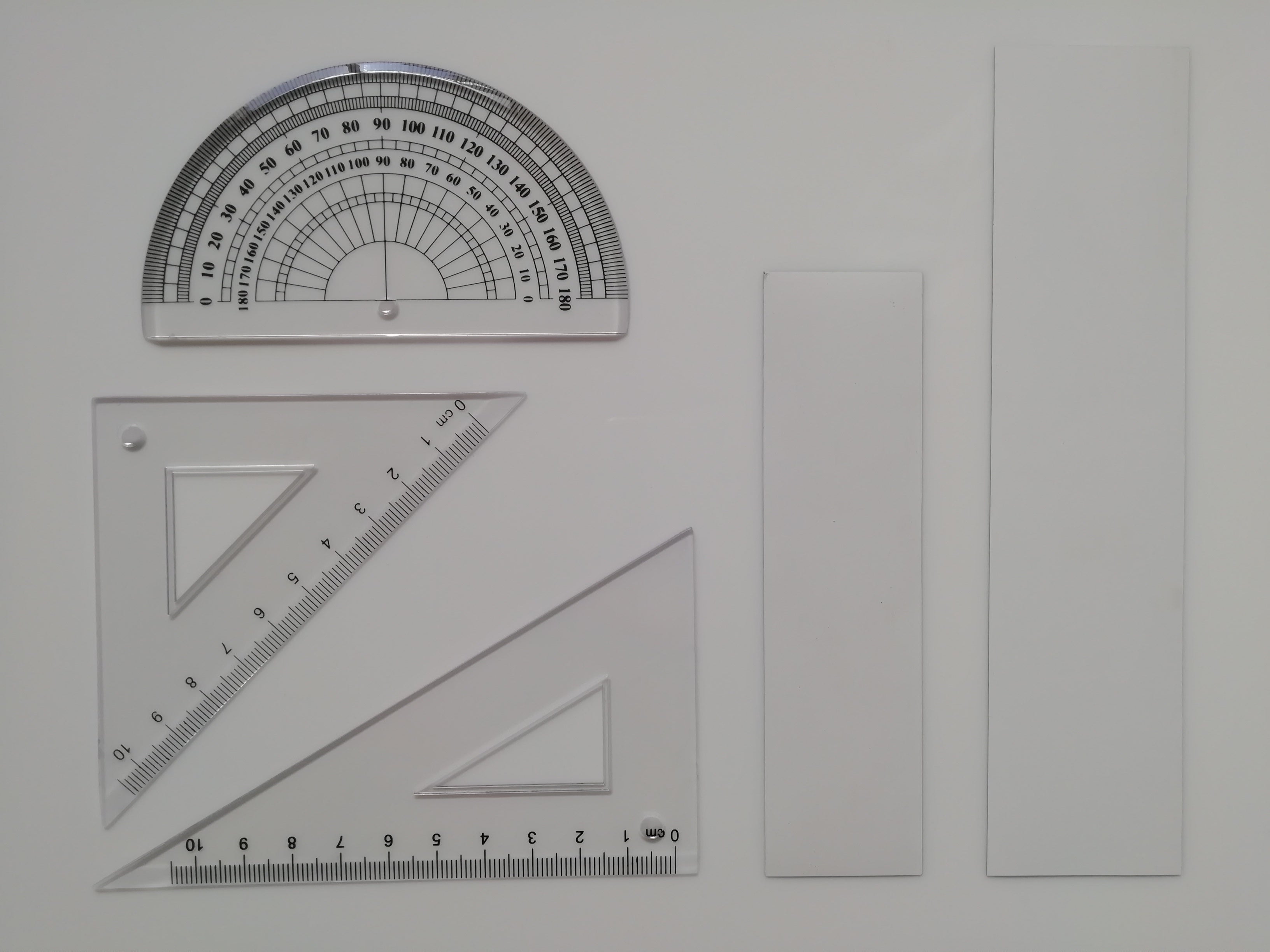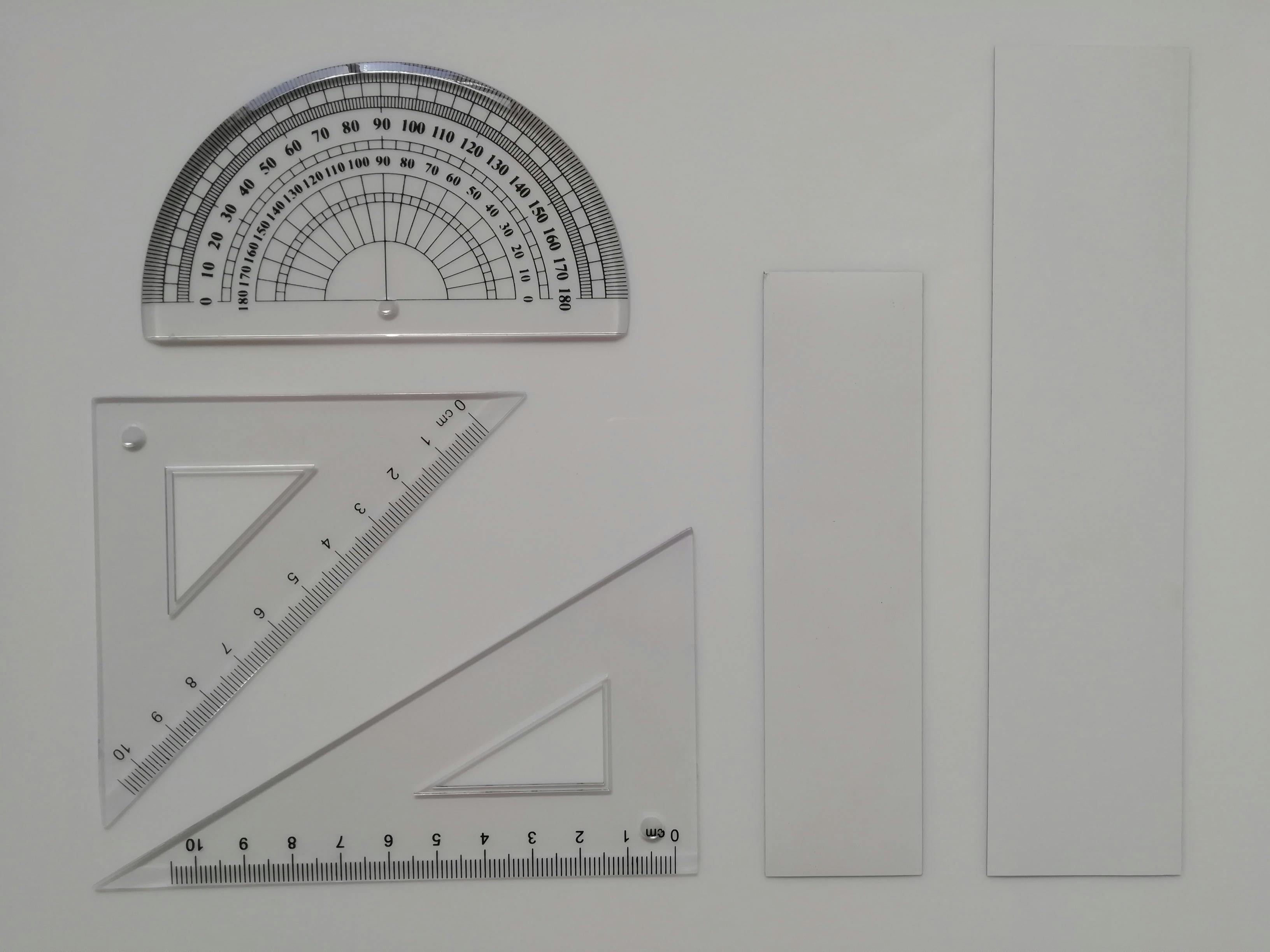 1セットに付き、三角定規2つと分度器を付属します。