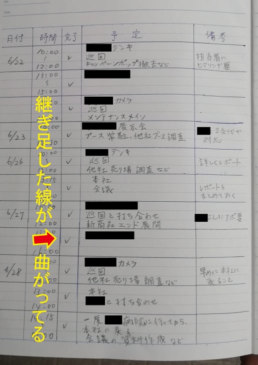 「長い定規を持ち歩いてないから、線が斜めになっちゃうんだよねー」